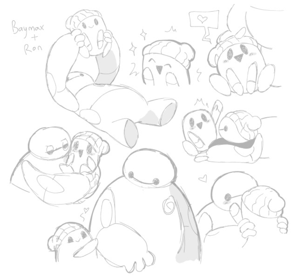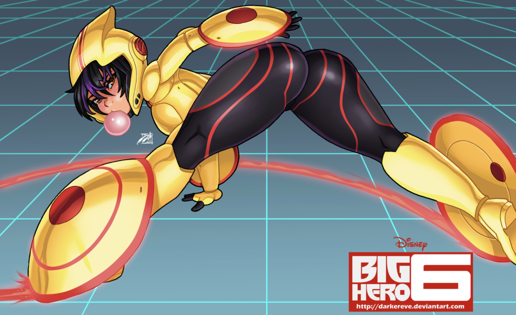 Come un giocattolo (dopotutto, cos’ha reso famosa la Pixar?), figure transazionali le più celebri delle quali sono la coperta-asciugamano bluastro di Linus Von Pelt e la tigre di peluche Hobbes dell’omonimo fumetto di Bill Watterson. Figure che inizialmente aiutano e supportano il bambinə nelle prime fasi della crescita per poi-con il subentrare d’amici veri e la generale maturazione fisica e mentale-diminuire la propria preponderanza, fino appunto alla morte/scomparsa: ormai possiamo cavarcela anche da soli. Certo; un dente dolente dell’intero film è il protagonismo di Baymax e Hiro su quegli che dopotutto sono più eroi: se il film non poteva essere solo su loro 2, con Hiro necessitante di persone umane ai fini della “terapia” Gogo Tomago, Honey Lemon, Wasabi no Ginger e Fred non hanno le stesse psicologie sfaccettate. Non è comunque un difetto perché sono tutti lo stesso interessanti e riusciti, se vogliamo sono figure quasi archetipiche della terapia mentale e morale di Hiro. Per dire, Gogo Tomago è la sorellona brusca ma amorevole, oltretutto già in odore di fidanzata, Honey Lemon è la sorellona più dolce, simpatica e dirimente di conflitti e turbolenze sentimentali, Wasabi no Ginger è il fratellone imponente e educante, una figura magnanima e carismatica alla quale appigliarsi come un mollusco attacca il proprio bisso solo allo scoglio più duro e inamovibile, Fred il fratellone spiritoso e giocherellone, più Roger Rabbit (Una risata può essere una cosa molto potente. Vedi, a volte nella vita è l’unica arma che ti rimane) che Shaggy di Scooby Doo. Inoltre per un film è dai tempi di Biancaneve e i Sette Nani che è necessaria una struttura con un macrotema al suo centro incentrato sui protagonisti limitando incursioni troppo insistite sui comprimari per evitare destabilizzazioni. Dopotutto che sfilacciatissima baraonda diventerebbe il film se vedessimo le vite familiari (o la loro mutilata mancanza) di tutti questi Big Hero 6! Per quello c’è la serie di Mark McCorkle che-con la diluita scansione in episodi-permette queste ricognizioni altrimenti dannose per la robustezza del film. Una captatio benevolentiae questo robot gonfiabile come un palloncino e morbido come un peluche per una Disney che si stava lanciando chissà dove? Può darsi quanto si vuole, ma pensiamo ai 6 mondi in cui il franchise mette i piedi. Il primo è quello Disney, con la sua estetica neotenica degli eterni cuccioli che simpatizzano il pubblico per le loro fisionomiche bambinesche (i disegnatori di Disney modificarono Topolino in silenzio, spesso usando in vario modo espedienti che mimano i cambiamenti della natura. Per dargli le gambe corte e paffute dei bambini, essi gli allungarono e allargarono i pantaloni. (Anche le braccia in seguito si ingrossarono ed acquistarono delle giunture che ne accentuavano l’aspetto grassoccio.) Le dimensioni della testa aumentarono e il volto assunse un aspetto più giovanile. La lunghezza del muso di Topolino non è mai stata modificata, ma esso è stato ingrossato e così appare meno sporgente. Gli occhi di Topolino crebbero in due modi: innanzitutto l’occhio del primo Topolino divenne, attraverso una trasformazione evolutiva discontinua, una pupilla [da Mickey’s Surprise Party (1939) – n.d.r.], in seguito l’intero occhio assunse dimensioni maggiori Stephen J Gould-Omaggio di un biologo a Topolino-Il pollice del panda). Il secondo è quello Pixar, ma esplorarlo adesso potrebbe sciupare sorprese future. Il terzo è il Ghibli: Baymax è un mix tra Totoro e i robot dell’isola volante di Laputa, senza nemmeno giocare a nascondino. Il quarto è il resto dell’animazione nipponica: i già citati Astroganga e Heroman (con lo zampino di Stan Lee….), ma pure il cyberpunk di Ghost In The Shell e il rapporto fraterno con un rimpiazzo artificiale di Fullmetal Alchemist. Il quinto è il fumetto Marvel, dopotutto è da lì che i Big Hero 6 provengono