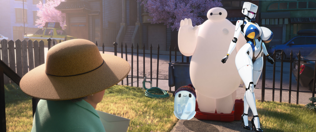 L’amicizia tra un ragazzino e un robot guerriero: nessun de-javù? C’è ne è uno intermedio di cui ancora non parleremo. Dal 1972 facciamo le cose in grande e andiamo al 2009. 37 anni, quanto saranno cresciuti Kazuko Sawada e Kaoru Ozawa, piccoli doppiatori all’epoca. In quello stesso 1972 le avventure dell’Uomo Ragno (e se non avete capito chi sia affarracci vostri, qui si traduce) lo vedevano contro l’Ammazzaragni, robot aracnide mandato a distruggerlo. Chi ci avrebbe creduto che l’eroe di Stan Lee e Steve Ditko un robot l’avrebbe addirittura pilotato? Siamo all’inizio del decennio successivo e i giapponesi fanno il loro Uomo Ragno, Supaidaman, molto più che uno sputazzatore di ragnatele. Molto più che uno sputazzatore di ragnatele fino a che punto? C’è chi si ricorderà la Spider Buggy. Bazzecole in confronto alla Spider Machine GP7, supercar che spicca il volo come caccia supersonico e-in puro stile Daitarn 3-s’inserisce nel super robot Leopardon. Che dite ho fatto 5 chili e 1/2 lascio? Ma gli andirivieni di Stan Lee tra America e Giappone sono appena cominciati. Nel 2009 in collaborazione con la Square Enix, dietro Soul Eater e Kingdom Hearts per la loro risposta a Shonen Jump, Monthly Shonen GanGan (Fullmetal Alchemist, Black Butler, Durarara! Space Dandy) per Heroman. Il pensiero in merito corre subito a Astroganga: Joey Jones-il protagonista-salva un robottino da un cestino dell’immondizia per ripararlo. Le riparazioni prendono una piega più grande del previsto quando un fulmine lo colpisce trasformandolo nel massiccio e svettante a 400 cm Heroman, eroe robotico chiamato a frapporsi all’invasione degli alieni Skrull. Entrando anche lui in simbiosi con il suo robot tramite l’etereo bracciale Gauntlet un ragazzino ha appena coscritto un incredibile amicizia. Le coincidenze non esistono disse un grand’uomo. Nel 2009 alla Disney c’è la Marvel a fare da ormai un decennio la coinquilina. John Lassetter è appena diventato CEO e contrariamente ai suoi trascorsi in Pixar e quelli alla Disney segnati dalle sottovalutazioni della vecchia direzione troppo impegnata sulla via del pensionamento (dopo poco aver perso un quasi veterano come Don Bluth) in alto sulla sua tabella di marcia ci sono le fiabe e le principesse, addirittura in 2D, roba della più quadrata immaginabile, ma lascia una porticina aperta a soggetti più anticonformisti, come appunto far incontrare i Vendicatori (anche di loro vi devo dire di chi si tratta?) A Disneyland. L’uomo importante è Don Hall, da poco uscito dalla supervisione degli storyboards di quel La principessa e il ranocchio inaspettato successo neoclassico per uno Studio con un passato recente tutt’altro che entusiasmante e di lì a poco regista del fugace ritorno di Winnie the Pooh. Sceglie i Big Hero 6, gruppetto minore abbastanza fuori dai radar per permettere un adattamento senza gobbe. Mentre il successo del 49esimo classico Disney era ancora fresco Lassetter approva quasi 10 film e quello sui Big Hero 6 è tra questi. A essere sempre stato presente sul progetto è Chris Williams, uno dei tanti tuttofare dello Studio che con lo sceneggiatore Daniel Gerson e con un Lassetter impegnato altrove ma molto generoso di beneplaciti si mettono subito al lavoro. Come si fa però un Classico Disney che è insieme un cinecomic Marvel? Come si mette uno spandex su una principessa? Come si inseriscono degli artigli in vibranio nelle mani di Topolino? Che canterebbero mai Capitan America, Wasp, il Teschio Rosso? E che c’entra il Giappone? Parliamone con calma. Big Hero 6 è una fiaba cyberpunk che cresce e procede attorno a Baymax, rivoluzionario robot gonfiabile dalle forme e dal bianco candidi con un volto simile a un emoticon (●-●) infermiere del futuro. La mentalità che lo ha ispirato è all’inizio quella del Totoro di Miyazaki con un che della Maromi di Paranoia Agent, al momento di dover dare botte cala su di sé l’armatura di Mazinga e di quell’Astroganga rimembrato anche nel rapporto con il coprotagonista umano, Hiro Hamada. Kantaro Hoshi aveva perso la madre aliena, Hiro Hamada perde il fratellone Tadashi-genio e mentore-e allo stesso modo Baymax come Astroganga fa da tramite per smaltire il lutto, andando incontro a uno stesso seppuku finale con le stesse valenze psicopedagogiche. Avremo tutti sentito parlare e pure avuto un amico immaginario, fosse stata la nostra ombra