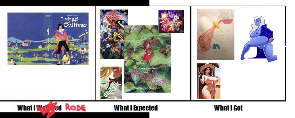 Tutto cominciò con un giocaccio di parole. Jonathan Swift è tra i tanti padri della narrativa fantastica, il suo I viaggi di Gulliver è da 300 anni un telamone della narrativa per ragazzi, ma come per La fattoria degli animali di George Orwell e La collina dei conigli di Richard Adams il tempo smussa gli spigoli ma anche il Diario di Anna Frank-dopotutto scritto da una ragazzina-è solo l’eco di un opera letteraria completamente diversa e assolutamente non per ragazzini. Da Gulliver che spegne un incendio a Lilliput pisciandovi sopra-vi fa schifo la scena di American Pie con la schiuma della birra essere in realtà sperma? Guardate in aggiunta che bere sperma umano non è una cazzata: esiste il macho mojito, un drink che ha come ingrediente principale…….esattamente quello di cui abbiamo parlato finora-a Brobdingnag la cui regina usa il protagonista come un incrocio tra un tampax (Nella tua cameretta