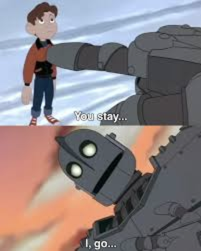Il film è un adattamento portato con grandissimo successo nei cinema il 06/08/1999 a opera di Philip “Brad” Bradley, come il Rich Moore di Ralph Spaccatutto (52esimo Classico Disney di due pellicole precedente a Big Hero 6) fattosi le ossa tra i gialli Simpson e gli spaziali Turanga la cui figlia Leela-in superficie-lavora alla Planet Express tra due millenni. Il gigante/uomo di ferro nel film compare in scena “tutt’intero” mostrando poi la capacità di separare i pezzi del proprio corpo alla stregua di Gackeen robot magnetico mentre nel romanzo è la prima cosa che vediamo di lui: i suoi pezzi smembrati che i gabbiani equivocano come potenziale cibo/materiale da nido, assieme al suo pallino culinario per il metallo e i rottami che li compongono, con la discarica dell’artista Dean McCoppin nel romanzo di un anonimo ferrivecchi. Il ragazzino alleato-un novello Kantaro Hoshi?-Hogarth (tale nel romanzo e nel film) conosce nel romanzo il suo colossale amico tra le pagine mentre va a pescare con il padre, mentre il film segue l’approccio E.T: Hogarth come Elliot è orfano con madre workaholic e bicicletta pronta a spiccare il volo alla luce della Luna, differentemente è anche il momento in cui i 2 si conoscono per la prima volta: nel romanzo il gigante è intrappolato in una buca, nel film la fame l’ha fatto intrappolare tra i cavi di una centrale elettrica che rischia d’annichilirlo con le sue scosse (oltre a provocare un blackout molto Poltergeist che scatena la curiosità del ragazzino). Inoltre, nel romanzo il gigante si scagiona gli occhi dell’umanità sfidando in una gara di resistenza un “drago angelo spaziale” grosso come l’Australia, mentre Tim McCanliness, lo sceneggiatore, dà alla storia la gravità di una parabola sulla guerra fredda, la sua paranoia e la MAD, la Mutual Assured Distruction che l’infido agente CIA Kent Mansley innesca dai missili di uno dei sommergibili della flotta americana. Credo che la minaccia di guerra nucleare non è altro che un bluff. Una cosa è agire da assassino criminale, un’altra scegliere il suicidio. L’utilizzo di armi nucleari significa la fine per tutte le parti in causa, non solo per chi schiaccia il bottone per primo (Volodymyr Zelens’kyj)
